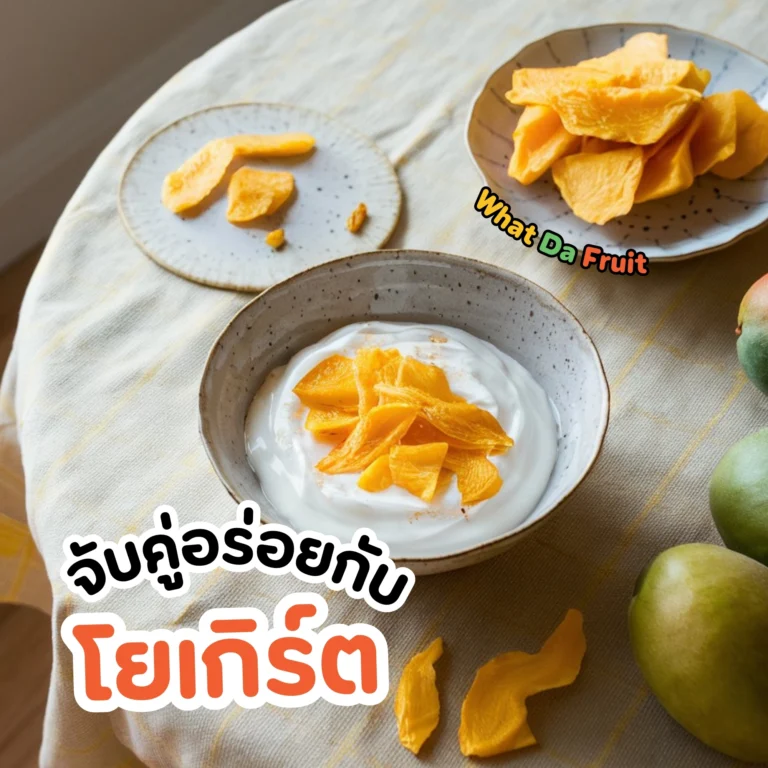 5 เมนูอร่อยจากมะม่วงอบแห้ง ที่คุณทำเองได้ง่ายๆ ที่บ้าน2024-08-21มะม่วงอบแห้ง มะม่วงอบแห้งเป็นของทานเล่นที่ทั้งอร่อยและมีประโยชน์ อุดมไปด้วยวิตามินและแร่ธาตุ ไฟเบอร์สูง แถมยังเก็บไว้ได้นานอีกด้วย วันนี้ What Da Fruit จะมาแนะนำ 5 เมนูอร่อยลงตัวจากมะม่วงอบแห้งที่คุณสามารถทำเองได้ง่ายๆ ที่บ้าน 5 เมนูอร่อยที่ต้องลอง 1. มะม่วงอบแห้งทานคู่กับโยเกิร์ต วิธีทำ: เพียงแค่ตักโยเกิร์ตรสธรรมชาติใส่ถ้วย โรยมะม่วงอบแห้งหั่นชิ้นเล็กๆ ลงไป ก็พร้อมทานได้เลย จะได้รสชาติเปรี้ยวอมหวานของมะม่วงอบแห้ง ฟินกับเนื้อสัมผัสหนึบๆ ของมะม่วงเพิ่มการเคี้ยวเพลินๆตัดกับรสเปรี้ยวของโยเกิร์ตได้อย่างละมุนและลงตัว เป็นของว่างยามบ่ายที่ทั้งอร่อยและดีต่อสุขภาพ 2. มะม่วงอบแห้งทานกับกลาโนล่าและนมโอ๊ต วิธีทำ: เทกลาโนล่าและมะม่วงอบแห้งหั่นชิ้นเล็กๆ ใส่ลงในถ้วย เติมนมโอ๊ตลงไป จากนั้นคนให้เข้ากัน รอให้นุ่มเล็กน้อยแค่นี้ก็พร้อมทานแล้ว ความกรุบกรอบของกลาโนล่าตัดกับความนุ่มหนึบหวานอมเปรี้ยวของมะม่วงอบแห้งเข้ากันสุดๆ เติมไฟเบอร์และคาร์บดีๆเข้าด้วยกัน อิ่มอร่อยสบายท้อง เพิ่มความสดชื่นให้กับมื้อเช้าของคุณ 3. มะม่วงอบแห้งทานกับสลัด วิธีทำ: เตรียมผักสลัดที่คุณชอบเติมธัญพืชหรือผลไม้ตามต้องการ โรยมะม่วงอบแห้งหั่นชิ้นเล็กๆ ลงไป ราดด้วยน้ำสลัดครีมมะนาว หรือน้ำสลัดที่คุณชื่นชอบ มะม่วงอบแห้งจะช่วยเพิ่มรสชาติหวานอมเปรี้ยวและให้ความสดชื่นให้กับสลัด เนื้อสัมผัสหนึบๆ ของมะม่วงอบแห้งตัดกับความกรอบของผักได้อย่างดี เป็นเมนูที่อร่อยไม่ใช่เล่นเลย สดชื่น เฮลตี้ อร่อยได้ประโยชน์ 4. มะม่วงอบแห้งปั่นสมูตตี้ วิธีทำ: นำมะม่วงอบแห้งแช่น้ำอุ่นให้นิ่มลงเล็กน้อย นำชิ้นมะม่วงใส่ลงในเครื่องปั่นพร้อมกับนม โยเกิร์ต และน้ำผึ้ง ปั่นจนละเอียด เทใส่แก้ว ท็อปปิ้งด้วยมะม่วงอบแห้งหั่นชิ้นเล็กๆ ก็จะได้สมูทตี้มะม่วงอบแห้งรสชาติเข้มข้น หวานอมเปรี้ยว ดื่มแล้วสดชื่น ได้เคี้ยวชิ้นมะม่วงหนึบๆ เป็นของหวานที่อร่อยฟินแน่นอน วันไหนต้องการความสดชื่นเป็นพิเศษต้องจัดเมนูนี้ 5. มะม่วงอบแห้งทานกับไอติมกะทิ วิธีทำ: ตักไอติมกะทิใส่ถ้วย โรยมะม่วงอบแห้งหั่นชิ้นเล็กๆ ลงไป พร้อมเสิร์ฟ แล้วฟินกับรสชาติไอติมกะทิหวานมันหอม เข้ากันได้ดีมากกับมะม่วงอบแห้งรสเปรี้ยวอมหวาน เป็นของหวานที่ลงตัว เข้ากันสุดๆ เป็นท็อปปิ้งที่ปังเและเหมาะกับไอติมกะทิสุดๆที่อยากแนะนำ อร่อยแบบไทยสไตล์ รับรองว่ากินคู่กันมีต่อถ้วยที่ 2 แน่นอน เป็นยังไงบ้างสำหรับ 5 ไอเดียเมนูมะม่วงอบแห้งจาก What Da Fruit อย่า